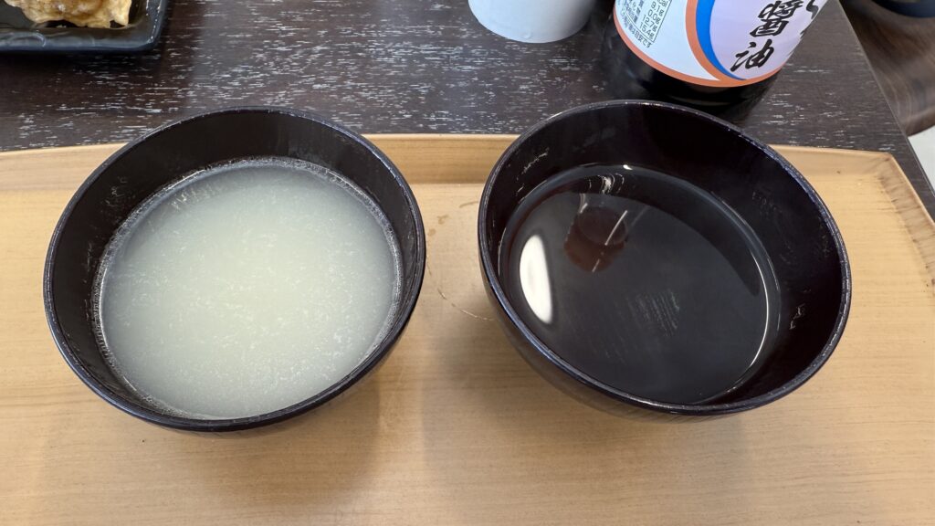 左側が地魚出汁、右側が昆布とカツオ出汁だ。