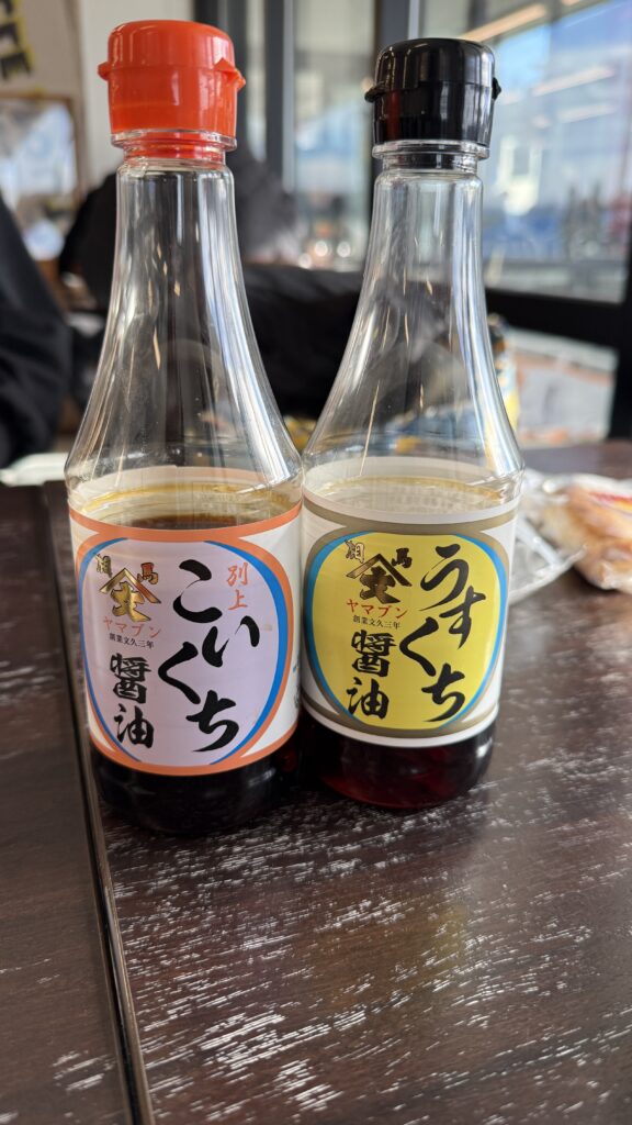 卓上には濃口醤油と薄口醤油の2種類がおいてあった。