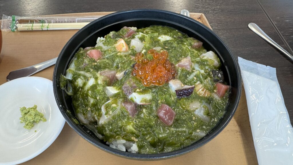 こちらはぶつ切りにされた刺し身にネバネバの海藻を和えたどんぶりだ。