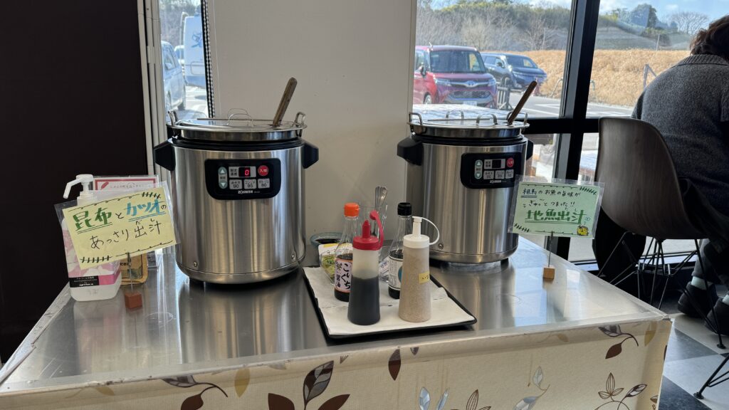 無料で何杯でも飲める出汁バーも名物のひとつだ。
